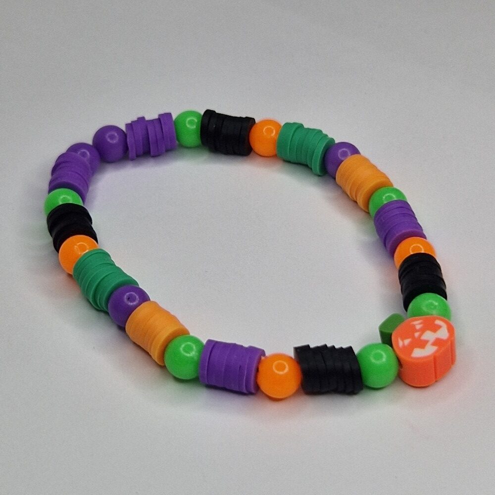 This beautiful colorful bracelet is an intertwining of mystical symbols and energy, bringing balance, protection, and abundance into your life. The 14 round beads in shades of purple, orange, and green represent the harmonious connection of mind, body, and soul—purple symbolizes spiritual wisdom, orange represents creative energy, and green brings renewal and growth. The cyclic pattern of circular beads in black, violet, green, and orange repeats three times, symbolizing the eternal flow of energy, protection, and connection with the universe.