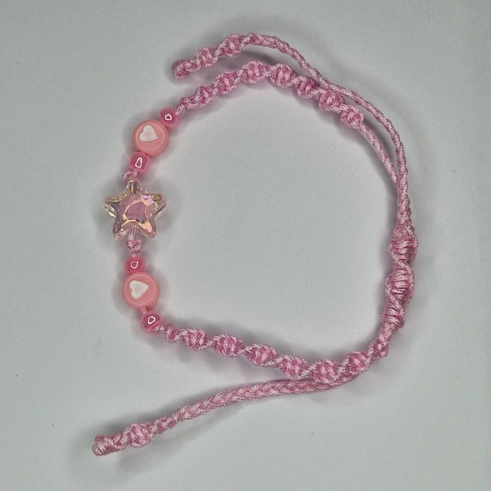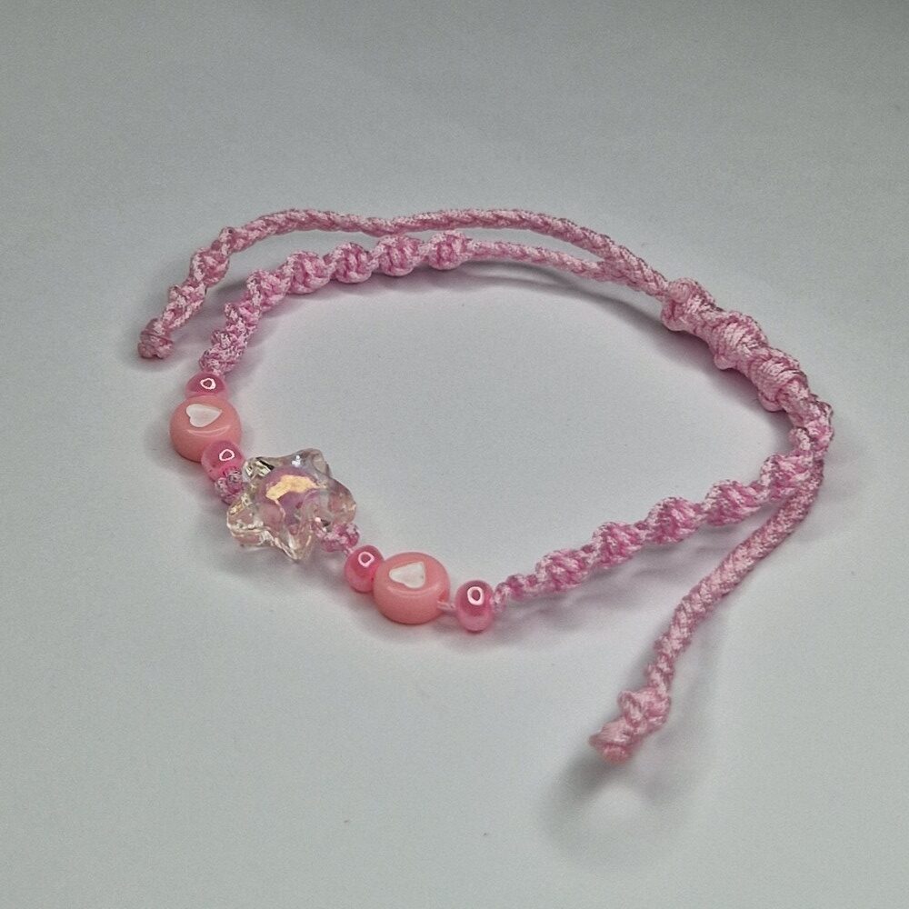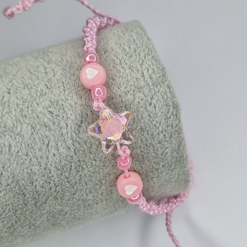 The pink color carries the energy of gentleness, compassion, and love, opening the heart chakra and bringing inner peace and joy. The transparent pink star at the center symbolizes light, divine guidance, and protection, while its pink circle inside represents wholeness and completeness.
